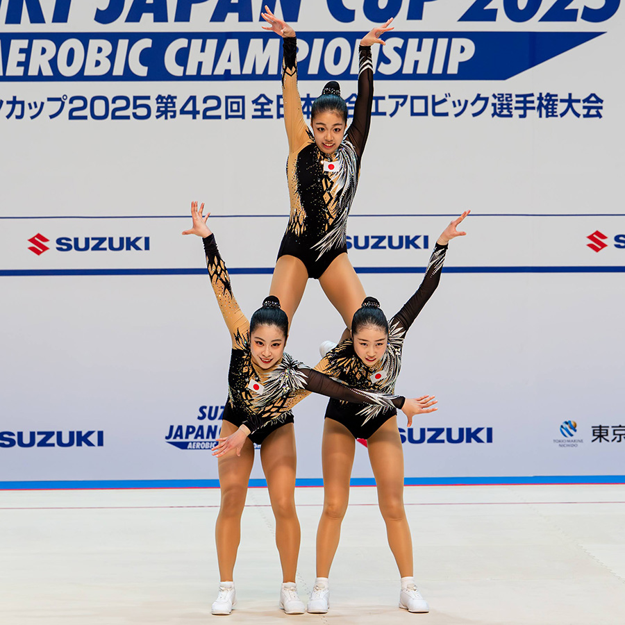 伝統的な有酸素運動(エアロビクス)に由来する、多様な動作パターンを音楽に合わせて連続して実施することを基本とする採点競技です。”エレメント”と呼ばれる高難度な技を正確な遂行度で実施することで高得点を競う種目です。FIG(国際体操連盟)の競技ルールに基づき4年毎に改訂されます。